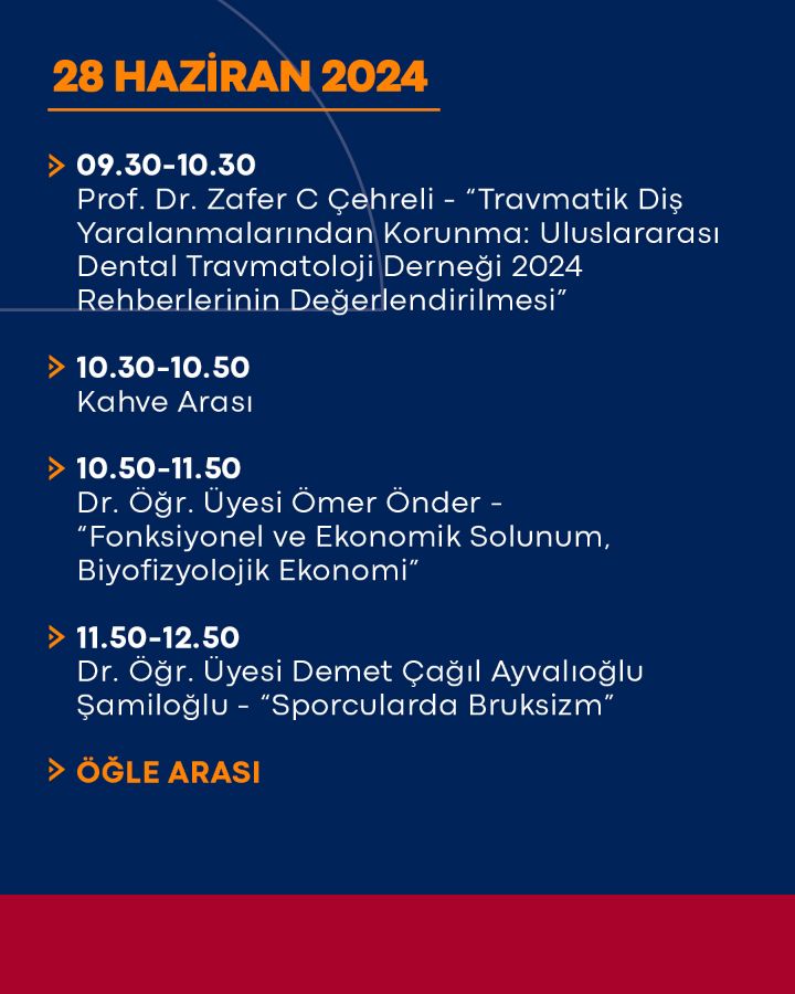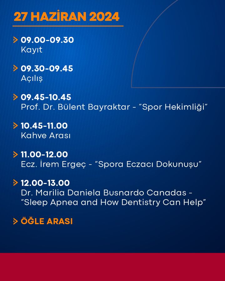 1. Uluslararası Sporcu Sağlığı ve Spor Diş Hekimliği Kongresi'ne 27-28 Haziran tarihlerinde İstanbul Sağlık ve Teknoloji Üniversitesi Sütlüce Yerleşkesi Oditoryum'da gerçekleştirilecektir.
