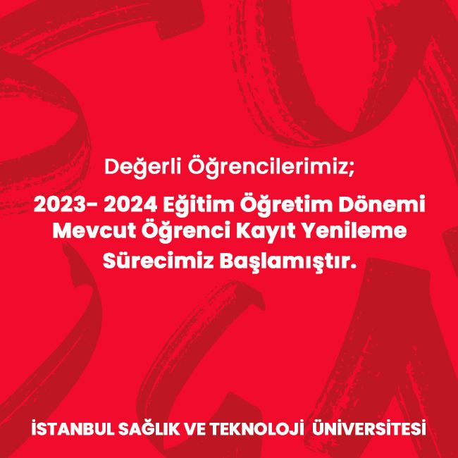 2023- 2024 Eğitim Öğretim Dönemi mevcut öğrenci kayıt yenileme süreci başlamıştır. Kayıt yenileme son tarihi 25 Ağustos 2023 olarak belirlenmiştir.