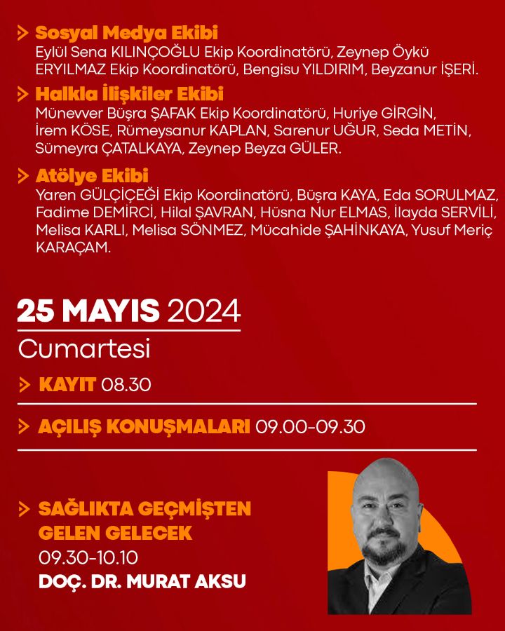 Değerli konuşmacılarımızın bulunduğu oturumlar ve atölyelerle ufkumuzu genişletecek kongremizde sizleri de aramızda görmek isteriz.