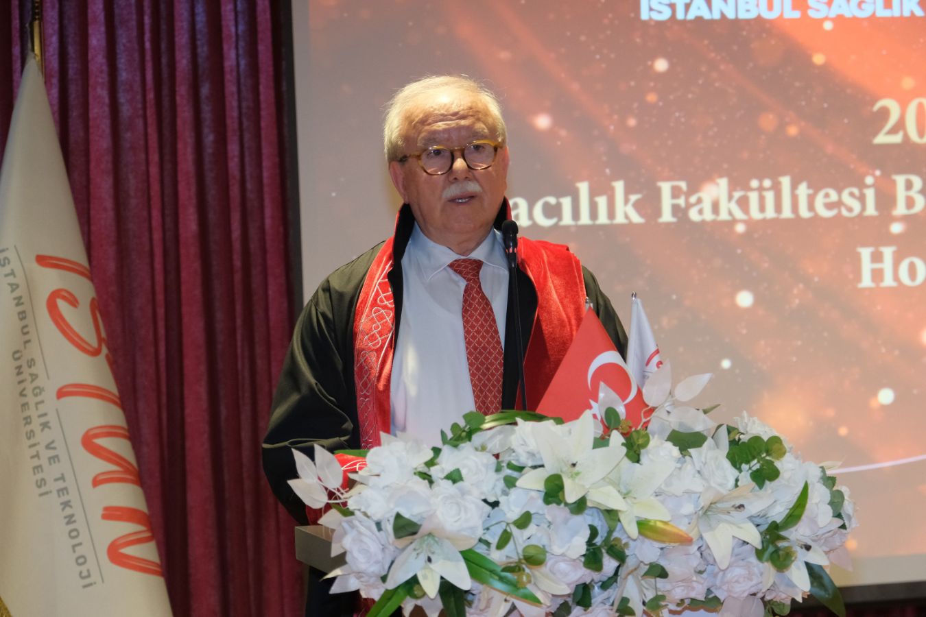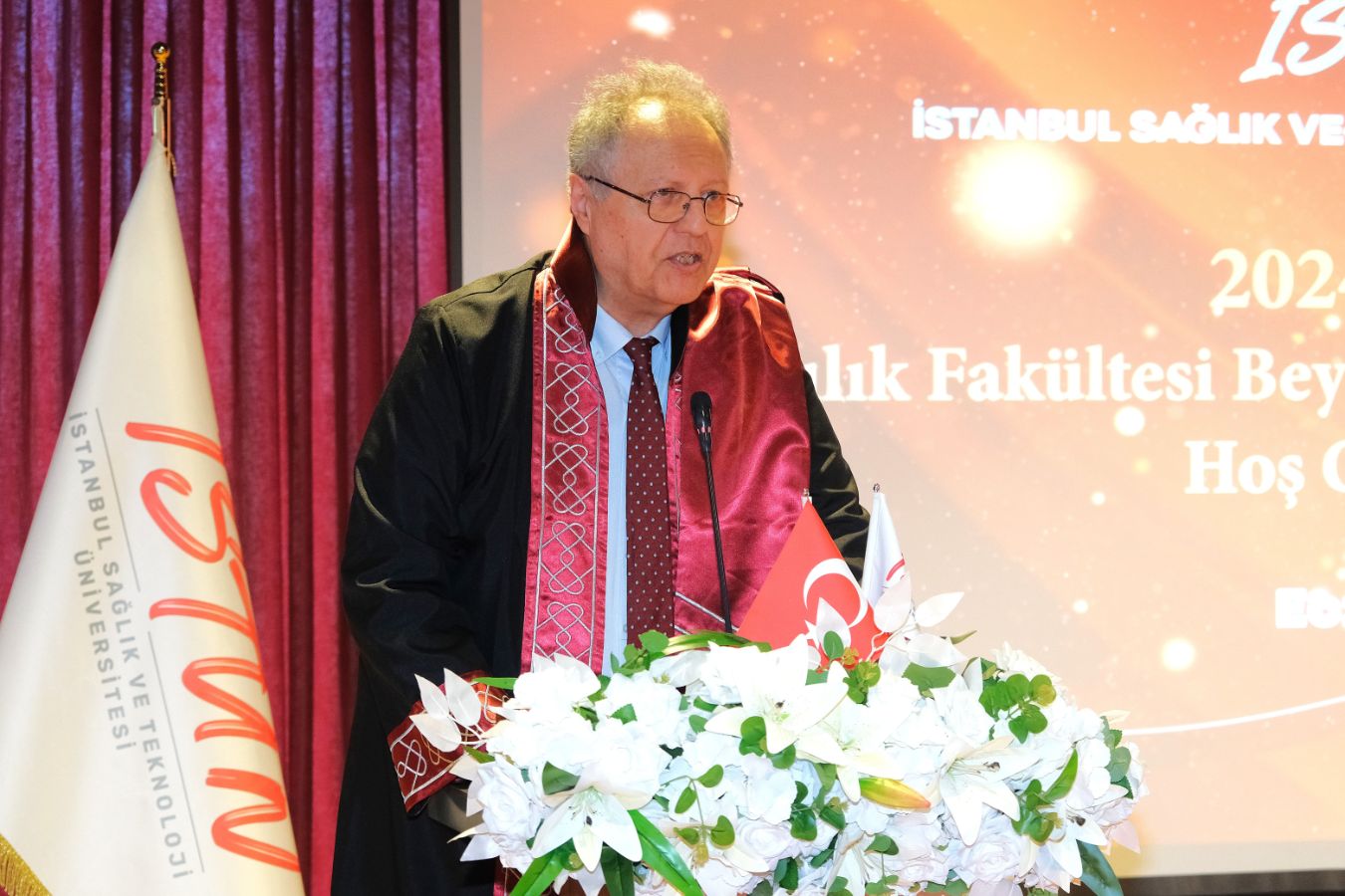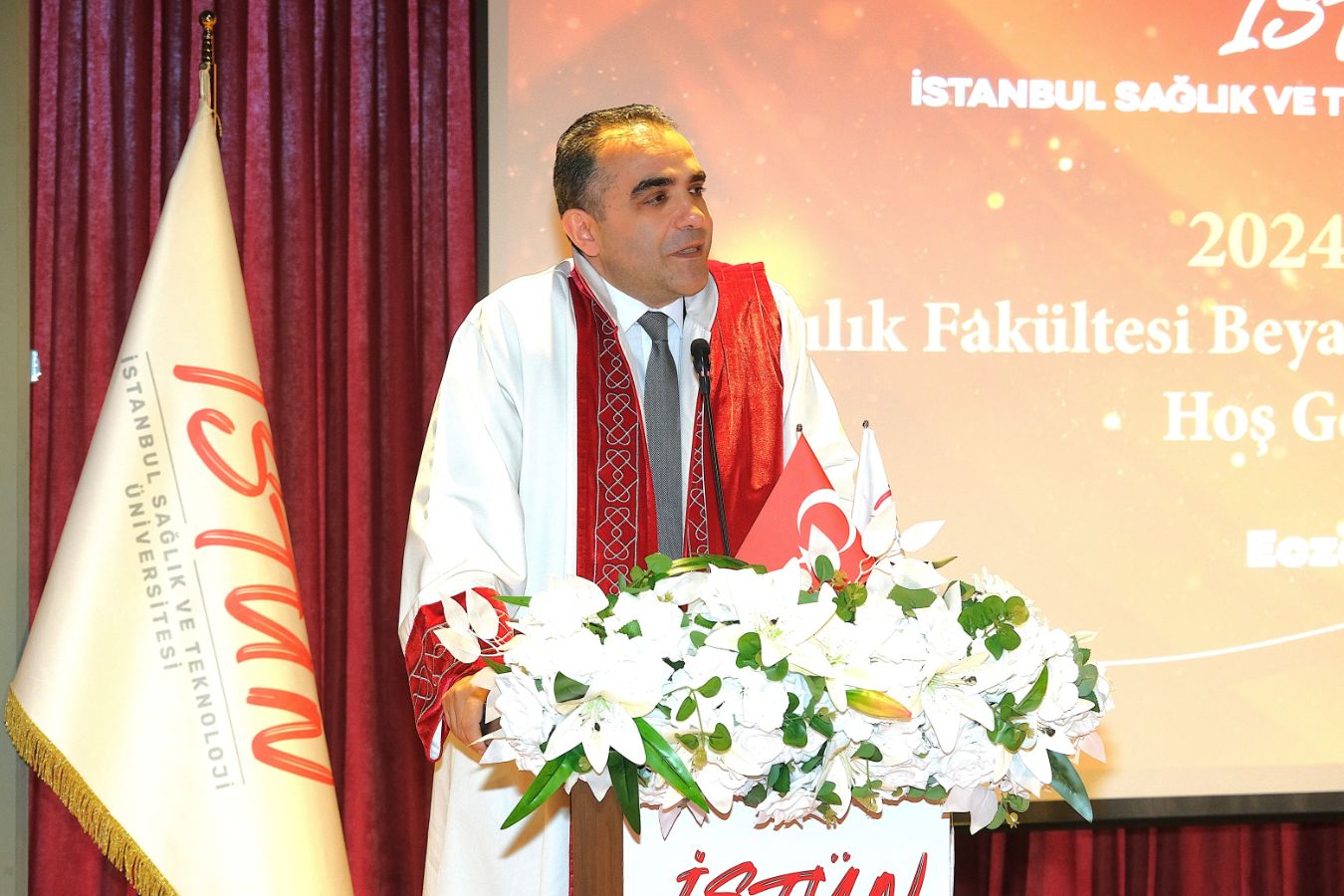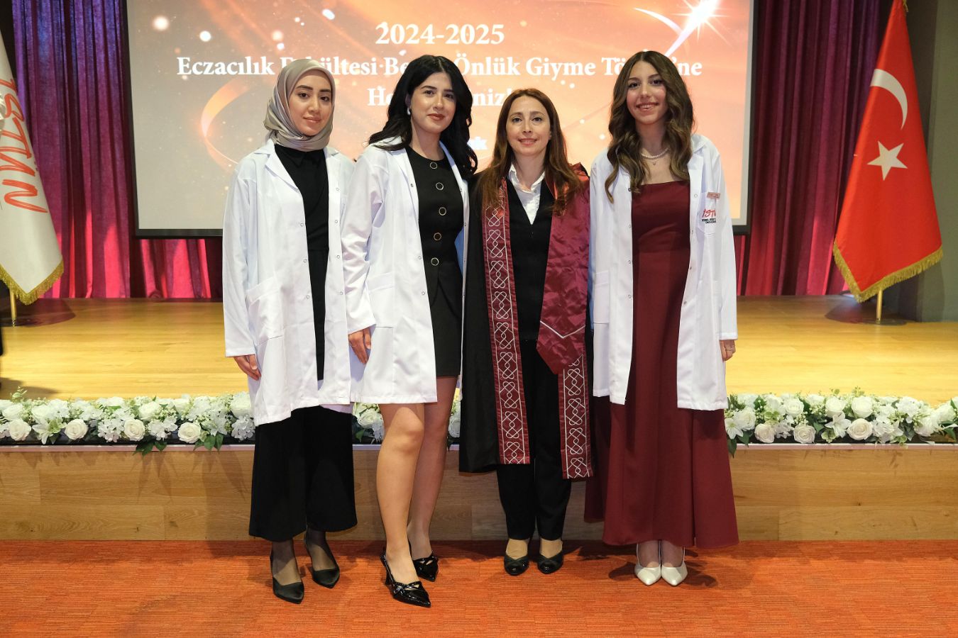 İstanbul Sağlık ve Teknoloji Üniversitesi (İSTÜN), 2024-2025 Akademik Yılı Eczacılık Fakültesi Türkçe ve İngilizce 1. sınıf öğrencileri için Beyaz Önlük Giyme Töreni 14 Mayıs Dünya Eczacılar Günü’nde gerçekleşti. Protokol katılımı, öğrencilerimizin ve ailelerinin yoğun ilgisi ile düzenlenen tören Sütlüce Kampüsü Oditoryumunda gerçekleşti. Törenin sunuculuğunu ise Tıp Fakültesi öğretim üyelerimizden Dr. Öğr. Üyesi Ömer Önder Önder üstlendi.